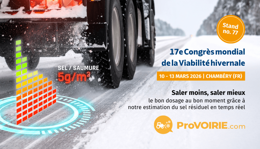 À cette occasion, Provatis dévoilera sa nouvelle solution de connaissance en temps réel du sel résiduel sur la chaussée. Basée sur une combinaison de données météorologiques, de trafic et de mesures terrain, cette technologie permet d’estimer précisément la quantité de sel encore présente sur la route.